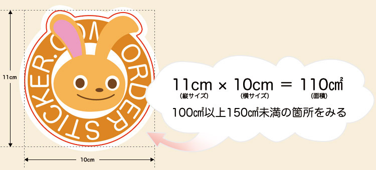 下の画像を参考にサイズを決め、ステッカー印刷価格表と照らし合わせてください。